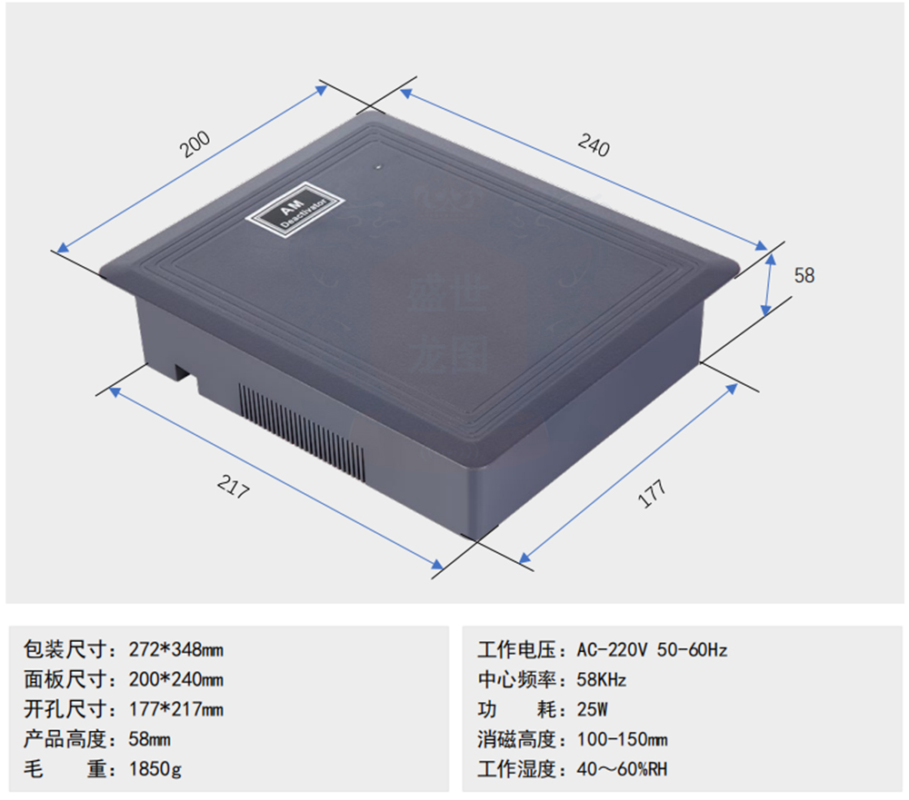 概述:D500聲磁一體機解碼器用于聲磁標簽解碼,檢測高度12-15CM,殺碼高度6-8CM,面板可鑲嵌在工作臺內,解碼具有聲音提示,不可解碼的標簽將持續報警提示。