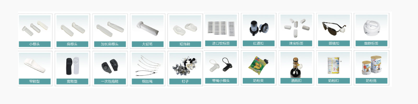 聲磁硬標簽根據商品不同有小榔頭、大榔頭、扁榔頭、鞋型標簽、酒瓶扣、奶粉扣等。