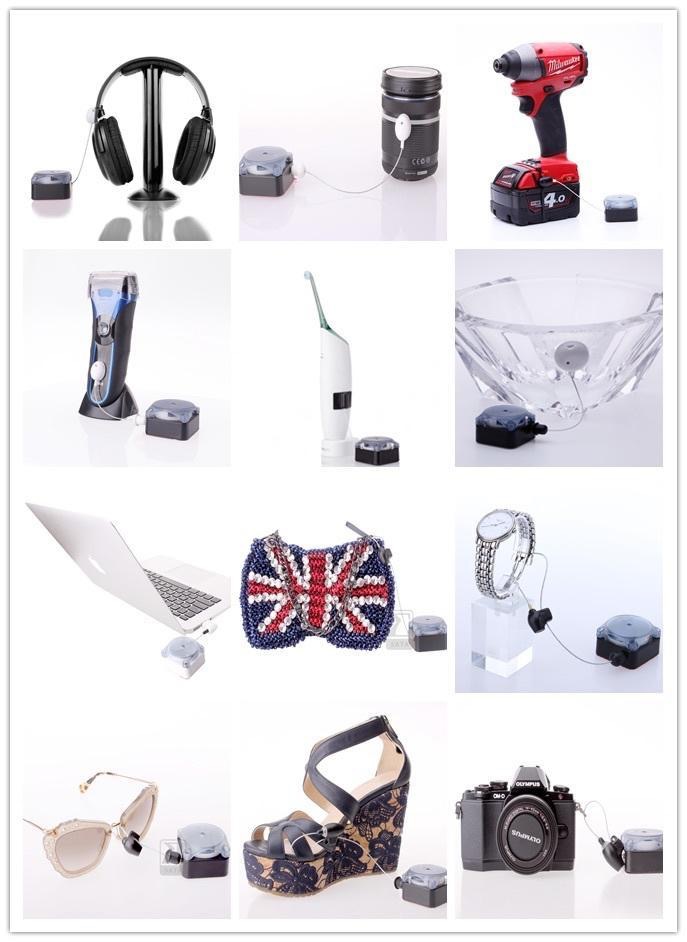 主要保護(hù)箱包、衣服、百貨店小商品、3C數(shù)碼店電子產(chǎn)品、眼鏡店等商品。具有剪斷鋼絲繩斷線報(bào)警、經(jīng)過(guò)AM防盜器報(bào)警功能等,可根據(jù)商品的不同選擇不同的傳感線。