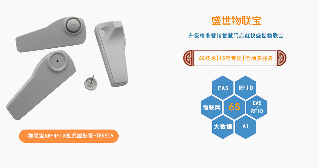 物聯寶TR980A 雙系統智能電子標簽內嵌AM標簽和RFID芯片,同時具有AM防盜和RFID識別功能,結合AM聲磁系統在零售賣場抗金屬能力強、報警率高優勢彌補RFID技術在防盜領域內的易屏蔽缺陷,AM、RFID技術的巧妙結合使得智能防盜、識別更高效,使用范圍更廣,適用于服裝、鞋帽、箱包等零售管理。