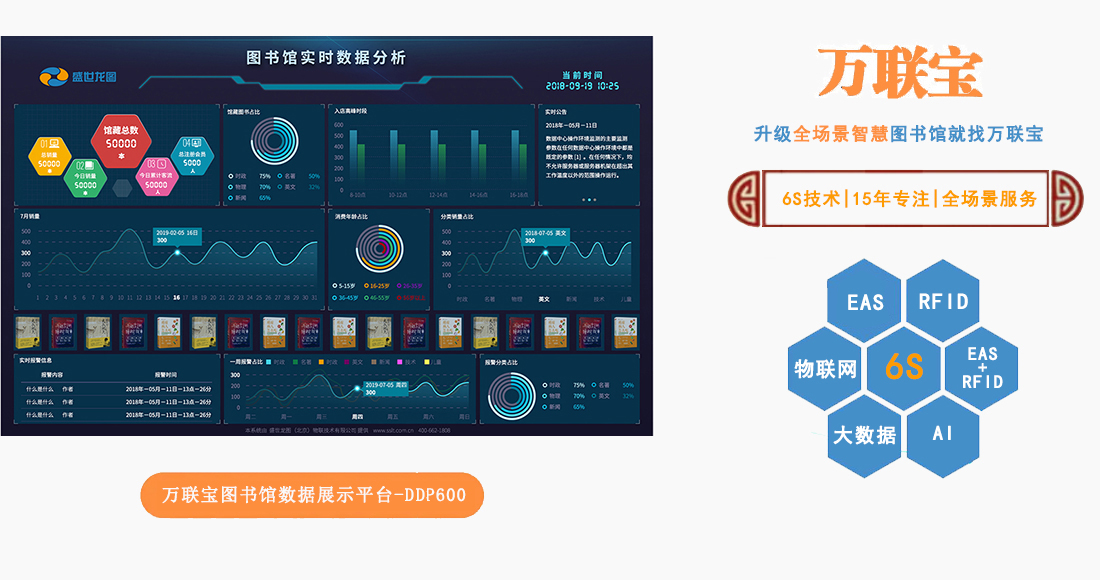 iAiot-DP600圖書館大數據智慧展示平臺是一套可以實時展示便于館方和讀者實時掌握圖書館及各分館的館藏、借還書情況、借閱排行榜、辦證統計、客流統計、報警識別等信息的平臺。