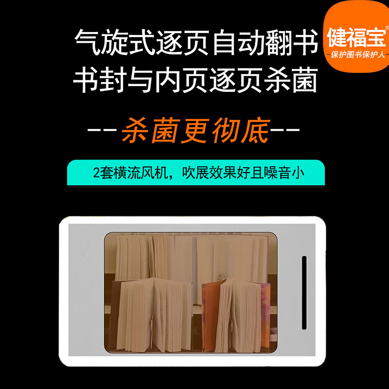 (3) 提供氣旋式逐翻動書頁之功能,達到同時提供書封與內頁之殺菌效果。