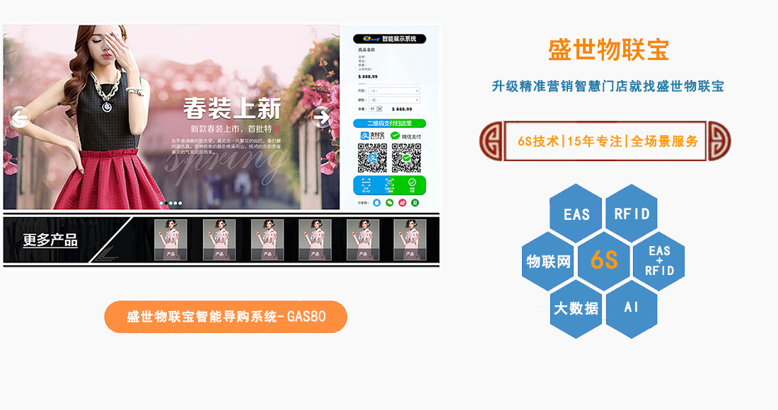 產(chǎn)品描述:GAS80 盛世物聯(lián)寶智能導(dǎo)購分析系統(tǒng)主要用于智慧門店新品、重點推薦產(chǎn)品的展示和體驗,針對新品或者爆款產(chǎn)品,當(dāng)客戶喜歡哪款產(chǎn)品后,只要放在感應(yīng)區(qū),該區(qū)域詳細介紹該商品信息,支持在線直接下單,支持MQTT、CAN物聯(lián)網(wǎng)協(xié)議,系統(tǒng)無接縫可對接大數(shù)據(jù)平臺實現(xiàn)智能硬件管控和銷售數(shù)據(jù)分析,該產(chǎn)品主要用于服裝智慧門店、智慧便利店、書店智慧門店、3C數(shù)碼智慧門店、精品智慧門店等場所。