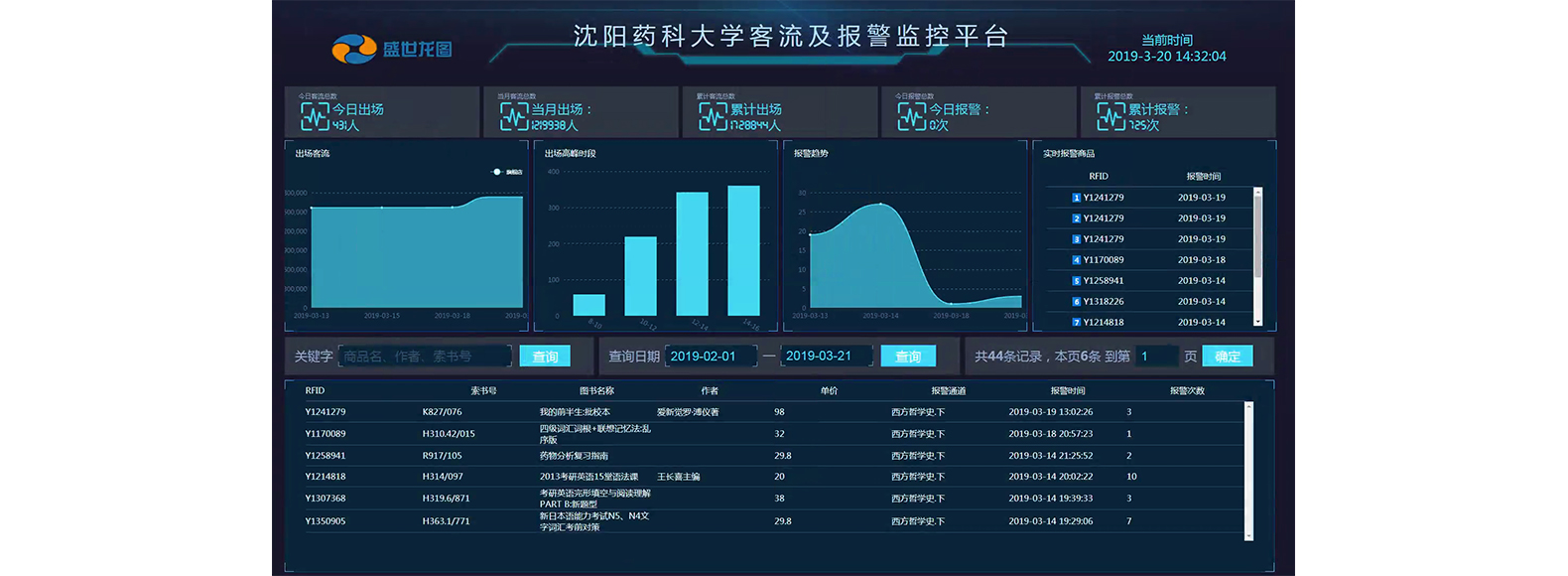 CS18A盛世物聯寶報警與客流統計系統是一套針對智慧零售門店、資產管理等場所進行每個防盜通道進出客流統計、報警識別的軟件系統,可通過一體機進行掛墻數據展示。