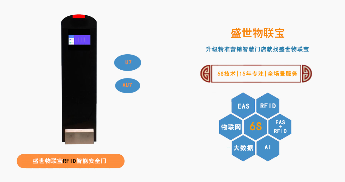 U7/AU7 RFID智能安全門采用進口雙層黑色亞克力設計,支持標簽的三維方向讀取,支持離線和在線兩種模式使用,AU7雙系統有效的解決了RFID標簽在零售防盜領域的缺陷,可選配客流統計。