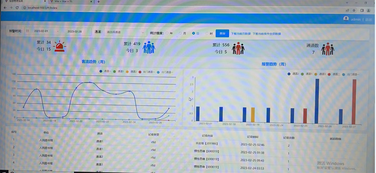 可以查看對應智慧門店每個通道客流進出和報警情況。